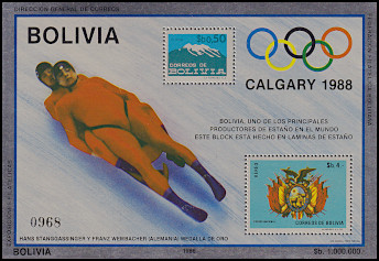 25.09.1986 Olympische Winterspiele Calgary gedruckt auf Zinn