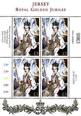 06.02.2002 50. Jahrestag der Krönung von Königin Elisabeth II. mit3 aufgeprägte Metallfolien: 2 in Gold (22 und 24 Karat) und eine in Silber