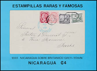 Great Britain 1½ Penny 1870 and 1 Shilling 1873 withNicaragua 5 Centavos 1869 and 25 Centavos 1877 on cover