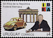 Uruguay 10 Centesimos 1928, 50 Centesimos 1932 and 2 Peso 1935 on Zeppelin-Cover