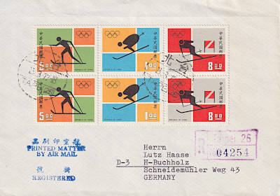 Foreign cover with registeration and airmail frankedwith 6 stamps Winter Olympic Games Sapporo