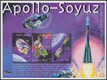 Apollo 18 and Soyuz 19 space capsules, sun and Earth