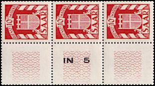 Postgebietsangabe: Kennzeichnung auf einem Bogenrand um gleichfarbige Brief- marken unterschiedlicher Postgebiete zu unterscheiden |