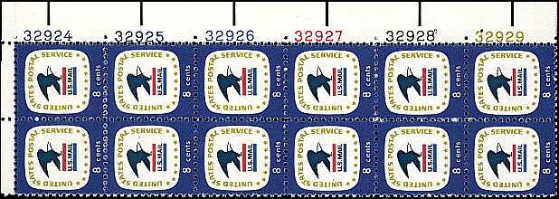 6-farbige Briefmarken die von 6 Platten gedruckt wurden erkennbar an den 6 Plattennummern auf dem Bogenrand |