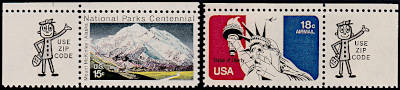 Zip-Code: Bogenranddruck bei Briefmarken der USA 1964 - 1993 mit dem die Postbe- nutzer daran erinnert werden sollten die Postleitzahl