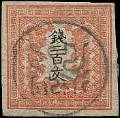 Japanfälschungen: massenhaft vorkom-mende Fälschungen japanischen Freibrief-marken von 1871 bis 1876