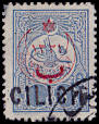 provisorischer Briefmarkendrittauf-druck: Briefmarke die mit einem behelfs-weise geschaffenen Briefmarkendrittauf-druck versehen wurde |