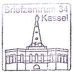 Letter Center Machine Insertion: part of a machine postmark that e.g. shows build-ings from the region of the letter center |