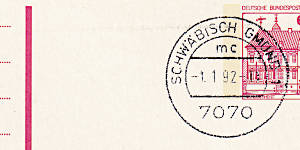 Monolingual Machine Postmark: postage stamp with machine postmark in one langu-age as intended style |