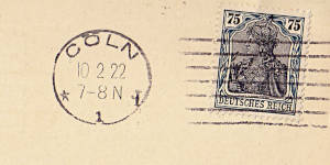 Camouflage Machine Postmark: machine postmark without town information, e.g. for field post shipments to conceal the location of troops during a war |