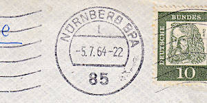 Postscheckamtmaschinenstempel: Maschinenstempelgattung als Einlief-erungsstempel für eine Postsendung von einem Postscheckamt |