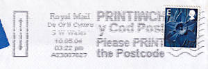 einsprachige Tintenstrahlentwertung: Briefmarke die als beabsichtigte Ausführung mit einer Tintenstrahlentwertung unter Ver-wendung einer einzigen Sprache entwertet wurde |