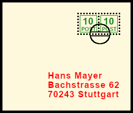 ergänzte Adresse: echte (nicht gelaufene) Postsendung mit echtem Handstempel die in betrügerischer Absicht mit einer falschen Anschrift versehen wurde |