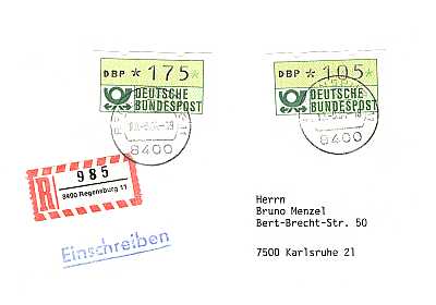 Postwertzeichenmischfrankatur mit Einschreibebriefmarke und Freistempel |