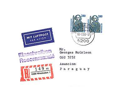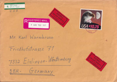 Brief mit Übergabe-Einschreiben, Luftpost und Rückschein |
