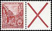 Zusammendruck Briefmarkenbilddruck mit Kreuz: Einheit bei der als beabsichtigte Ausführung ein Bogenfeld mit einem Brief-markenbilddruck und das andere mit einem Andreaskreuz bedruckt wurde |