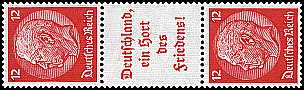 Zusammendruck mit Briefmarkenauf-druck über zwei Briefmarken: Zweier-streifen der mit einem gemeinsamen Brief-markenaufdruck versehen wurde |