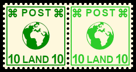 Zusammendruck mit ein-fachem und doppeltem Brief-markenaufdruck: Einheit bei der durch einen Fehler eine Briefmarke mit einem einfachen und die andere mit einem zwei-fachen Briefmarkenaufdruck versehen wurde |