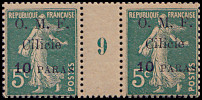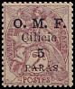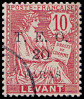 5 Piaster auf 40 Centimes rot/ blau |