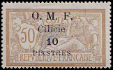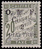 1 Piaster auf 25 Centimes blau, weißes Papier |