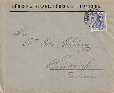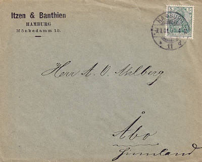 Auslandsbrief (1-20 g) vom 18.08.1900 frankiert mit einer Marke a 20 Pfennig (=20 Pfennig) |