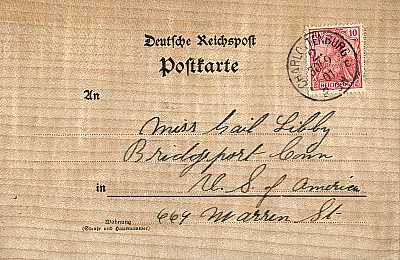 Auslandspostkarte vom 30.09.1901 frankiert mit einer Marke a 10 Pfennig (=10 Pfennig) |