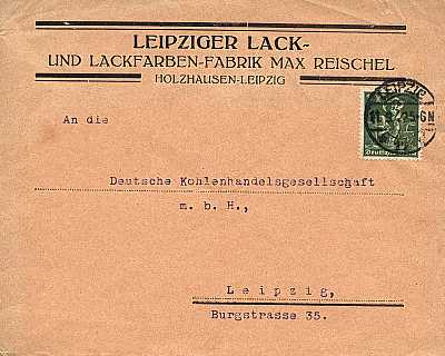 Local cover (1-20 g) from 11.01.1923 (11. Period) franked with 10 stamps a 100 Pfennig (=10 Mark) |