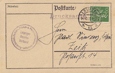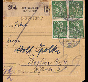 Inland printed matter (1-20 g) from 14.10.1922 (9. Period) franked with one stamp a 100 Pfennig (=1 Mark) |