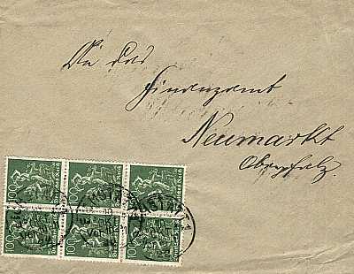 Inland cover (1-20 g) from 10.10.1922 (9. Period) franked with 6 stamps a 100 Pfennig (=6 Mark) |