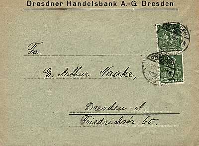 Local cover (1-20 g) from 02.10.1922 (9. Period) franked with 2 stamps a 100 Pfennig (=2 Mark) |