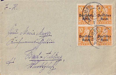 Inland book order (1-50 g) from 03.09.1920 (5. Period) franked with one stamp a 10 Pfennig (=10 Pfennig) |