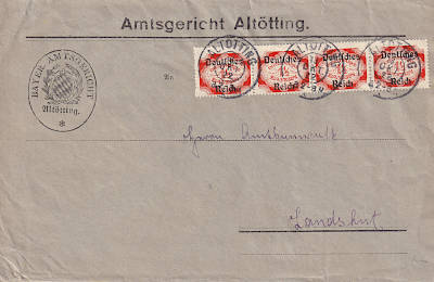 Inlandsbrief (1-20 g) vom 13.10.1922 (9. Periode) frankiert mit 4 Marken a 1½ Mark (=6 Mark)
