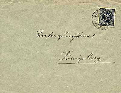 Ortsbrief (1-20 g) vom 03.03.1922 (7. Periode) frankiert mit einer Marke a 1,25 Mark(=1,25 Mark)