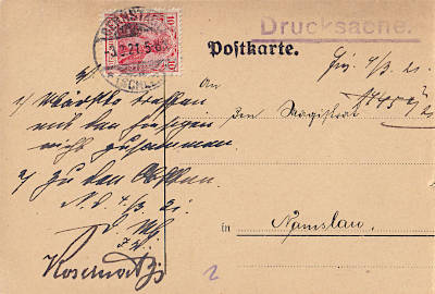 Inlandsdrucksache (1-50 g) vom 03.03.1921 (5. Periode) frankiert mit einer Marke a 10 Pfennig (=10 Pfennig) |