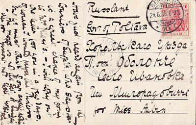 Auslandspostkarte vom 24.06.1908 (1. Periode) frankiert mit einer Marke a 10 Pfennig (=10 Pfennig) |
