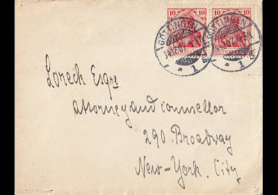Auslandsdrucksache (1-50 g) vom 08.11.1920 (5. Periode) frankiert mit 2 Marken a 10 Pfennig (=20 Pfennig) |