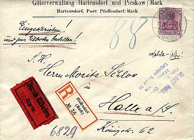 Inland cover with registeration and special delivery (1-20 g) from 18.03.1919 (3. Period) franked with one stamp a 60 Pfennig (=60 Pfennig, 15 cover 20 registeration 25 special delivery) |