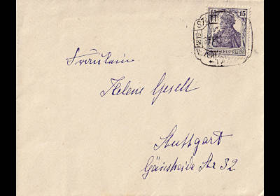 Inlandsbrief (1-20 g) vom 02.03.1918 (2. Periode) frankiert mit einer Marke a 15 Pfennig (=15 Pfennig) |