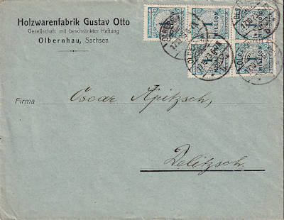 Inland cover (1-20 g) from 17.10.1923 (20. Period) franked with 5 stamps a 1 Million Mark (=5 Million Mark) |