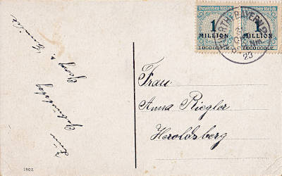 Local postcard from 15.10.1923 (20. Period) franked with one stamp a 1 Million Mark (=1 Million Mark) |
