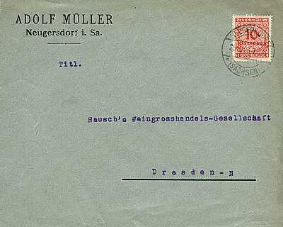 Inlandsbrief (1-20 g) vom 29.10.1923 (21. Periode) frankiert mit einer Marke a 10 Millionen Mark (=10 Millionen Mark) |