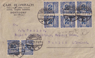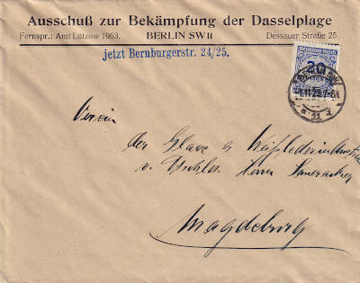 Inland printed matter (1-25 g) from 01.11.1923 (22. Period) franked with one stamp a 20 Million Mark (=20 Million Mark) |