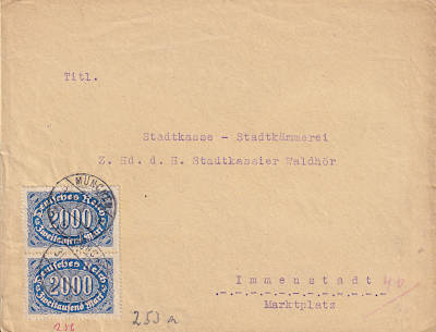 Local cover (1-20 g) from 27.08.1923 (19. Period) franked with 4 stamps a 2 000 Mark (=8 000 Mark) |
