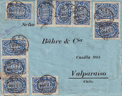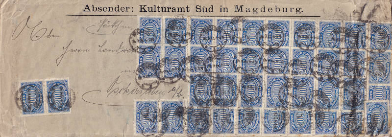 Inland cover (1-20 g) from 30.08.1923 (16. Period) franked with 10 stamps a 2 000 Mark (=20 000 Mark) |