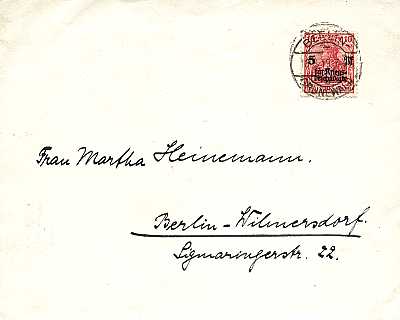 Local cover (1-20 g) from 18.08.1919 (3. Period) franked with one stamp a 10 Pfennig (=10 Pfennig)