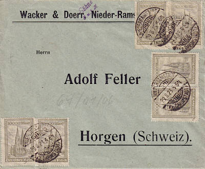 Inland cover (1-20 g) from 31.08.1923 (16. Period) franked with 2 stamps a 10 000 Mark (=20 000 Mark) |