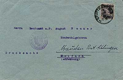Inlandsdrucksache (1-50 g) vom 18.06.1921 (6. Periode) frankiert mit einer Marke a 15 Pfennig (=15 Pfennig)