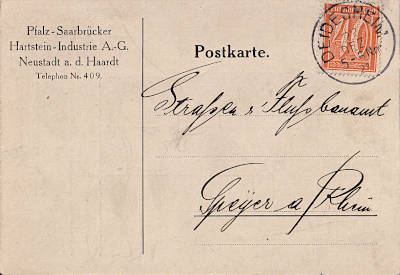 Inlandspostkarte bis 5 Worte vom 27.02.1922 (7. Periode) frankiert mit einer Marke a 40 Pfennig (=40 Pfennig) |