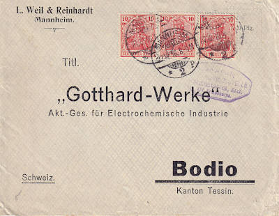Foreign cover (21-40 g) from 27.12.1916 franked with 3 stamps a 10 Pfennig