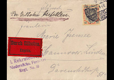 Inland cover with special delivery (1-20 g) from 21.11.1916 franked with one stamp a 40 Pfennig (=40 Pfennig, 15 cover 25 special delivery)